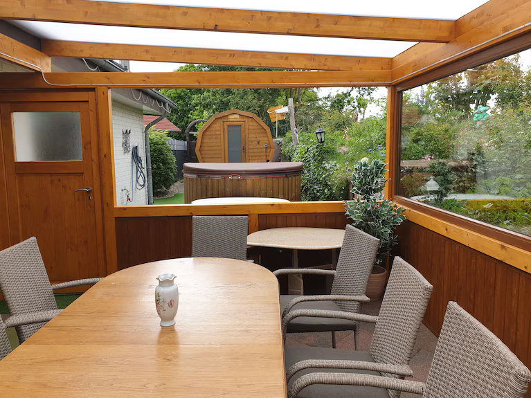 Das Ferienhaus Vera ist eines unserer Ferienhäuser direkt am Heeder See in Heede und bietet Sauna, Whirlpool, Grillkota und eine große Terrasse – nur 150 m zum Strand