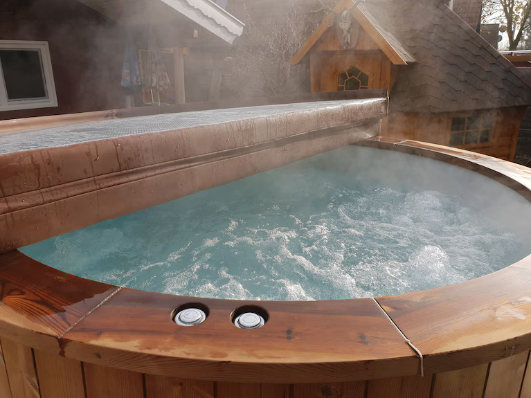 Durch die vollständige Isolierung verliert der Badezuber nur minimal an Temperatur.